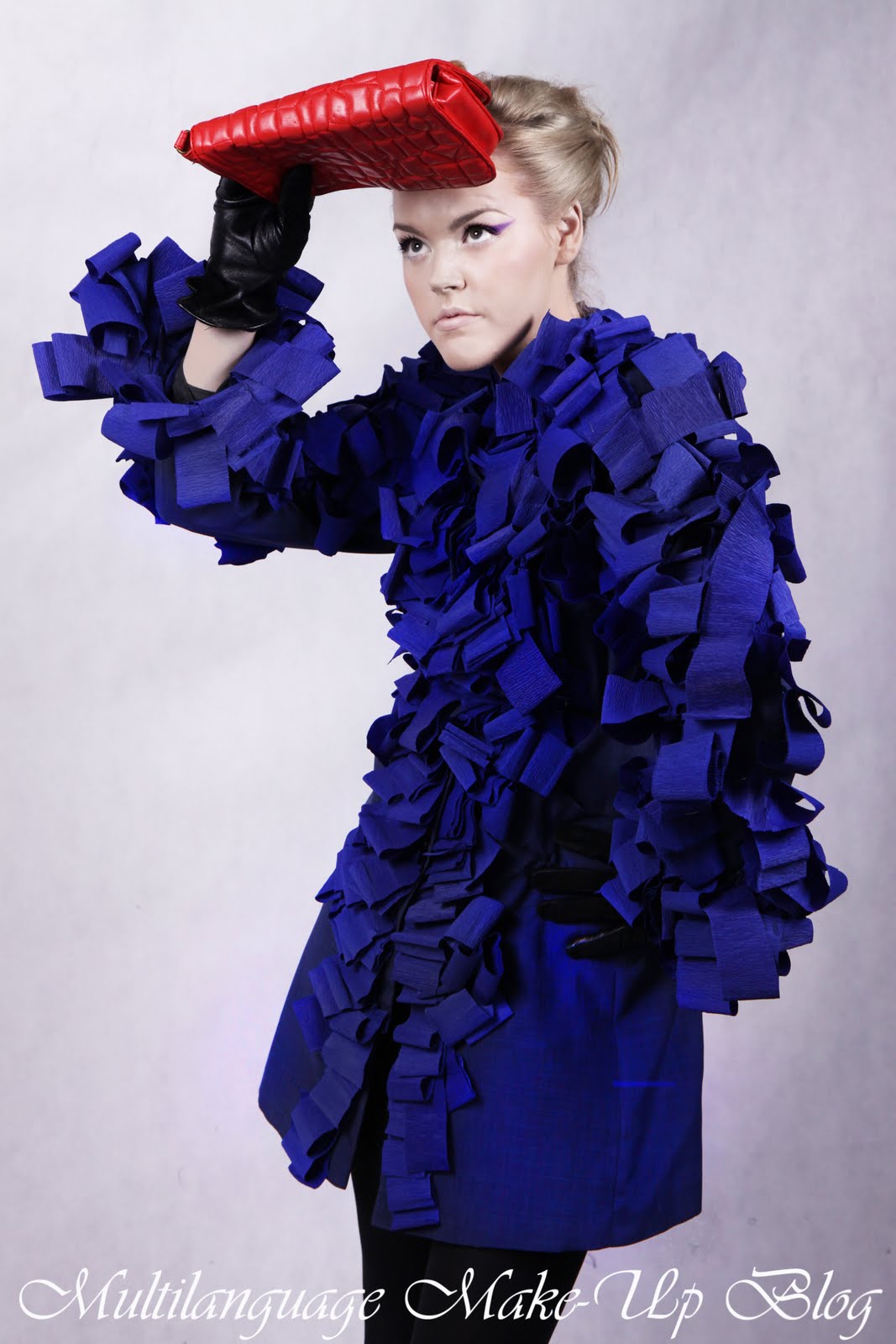 Our first photo shoot was in january. The task was to create an outfit (preferably) made of paper or other material that's not typical for making clothes of. We were supposed to copy a designer piece, or just take an inspiration from one.